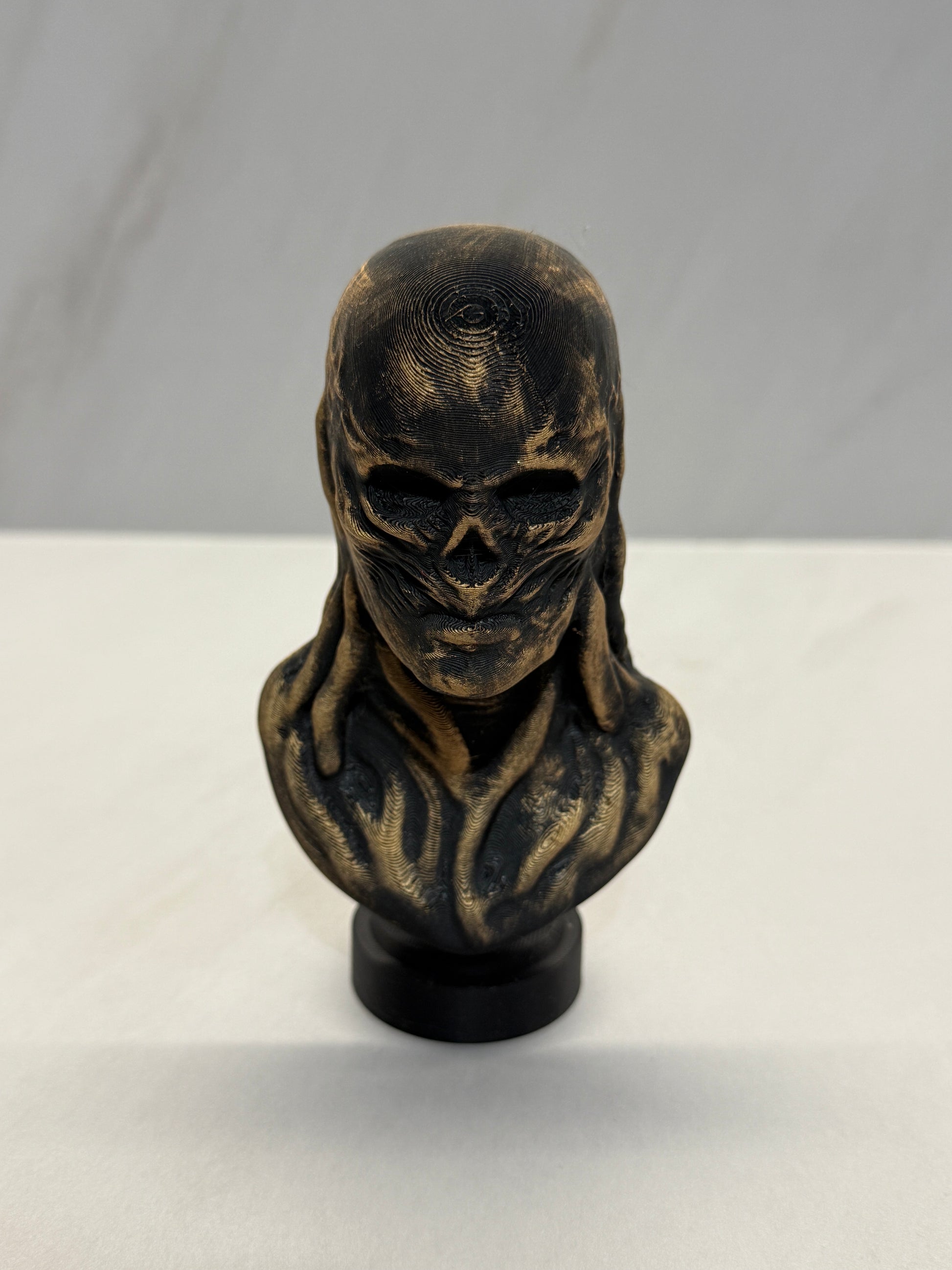 Bring a touch of the Upside⦠down to your shelf. This eerie, intricately detailed 3D printed villain bust makes a bold display piece for fans of strange, spooky realms and dark sci-fi aesthetics.